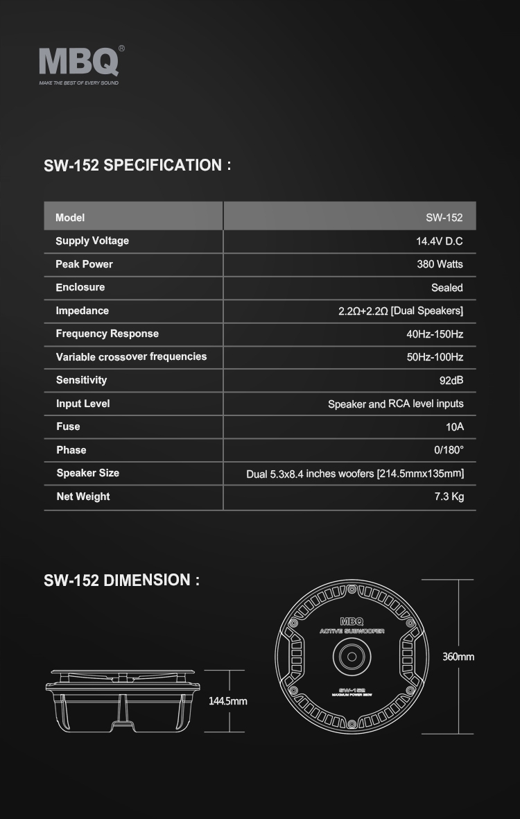- MBQ顛覆性產品輪轂備胎位汽車音響低音箱SW-152